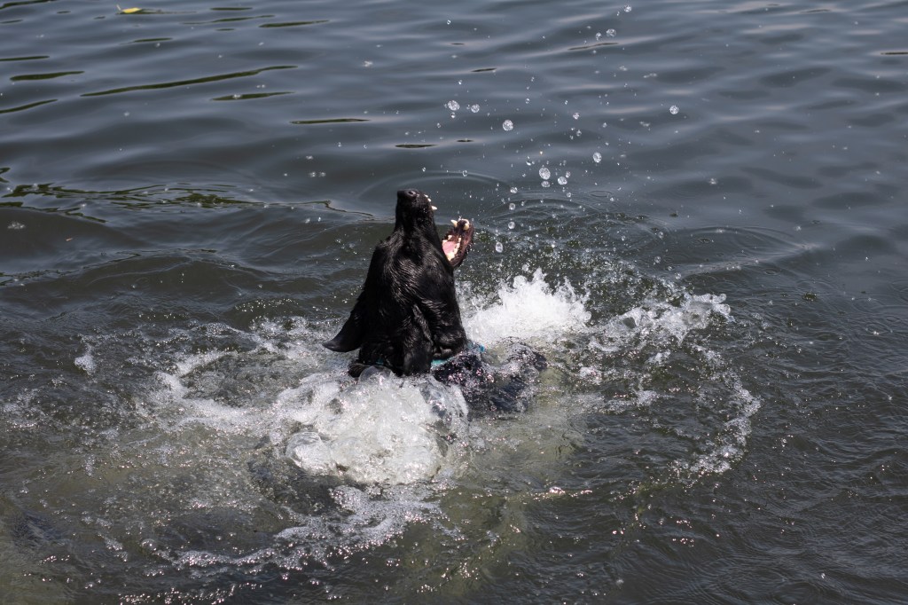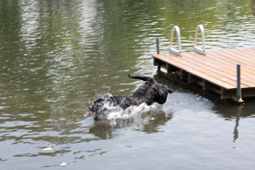 Me and my gal, we’ve been swimming. Every day, we swim. We’re lucky enough to be able to do that these days, being on a small lake in the summer, and we’re taking full advantage of it. It’s a blessing, a blessed thing. We both agree. Every day around noon, she starts to pester me. She comes right over to me, plops her fat butt down on top of me, starts pushing on me with her nose, and tries to eat my hands. Alternatively, she will just stand next to me, and stare. You know exactly what she wants, and you know she knows you know exactly what she wants. It’s swim time. She’s waited patiently all morning, for you to do your morning business, she’s been patient, and waited long enough. And now, it’s swim time. These days, it’s the only thing on her mind. It’s everything she’s living for. You can see it in her eyes, and by the way her face lights up when you say the word, the word that she has oh so keen an ear for, the S word. You have to be careful, very careful when you say it around her. I noticed she was going crazy around me when I would be walking around without a shirt on, and I realized it was because she thought we were going swimming. She knew I was always shirtless. So today, after my morning work, of some emailing, some phone calling, and some generation of AI cats drinking milk from saucers in the style of Pablo Picasso, and I sat down to play a little guitar, Daisy decided it was swim time, and came right over and sat her butt down on top of me. Into the water we went!