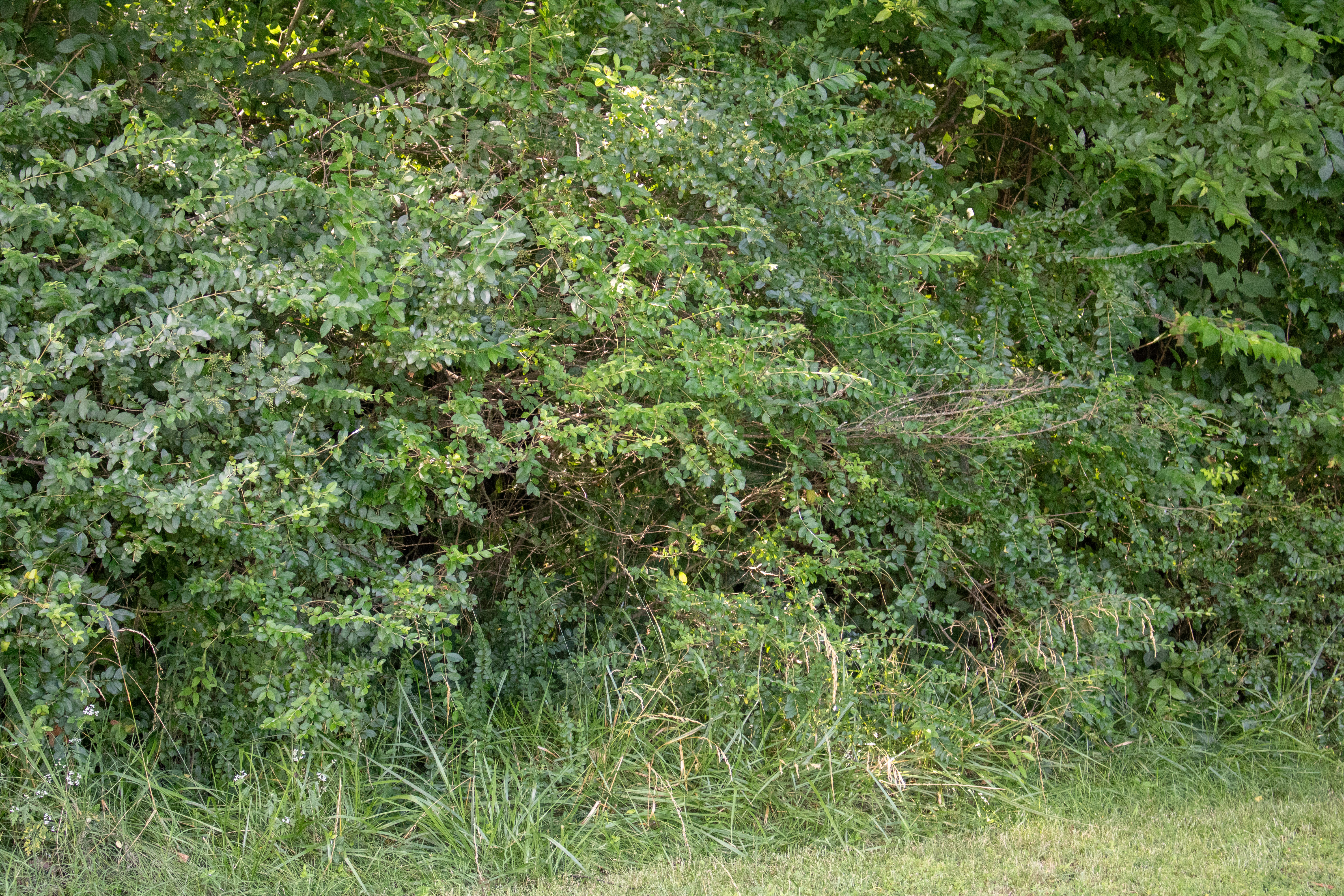 I have some photos for you. First, since I’ve been talking about the privet, here it is, at Shelby. This is at the edge of some woods, and it looks like this at the edge of most of the woods. Notice that you cannot see into the woods at all. That is because of the privet. I wish I had a photo of the Couchville Lake woods, to show you the comparison. Just about everything you see below the leaves of the trees in the understory, is Chinese Privet.