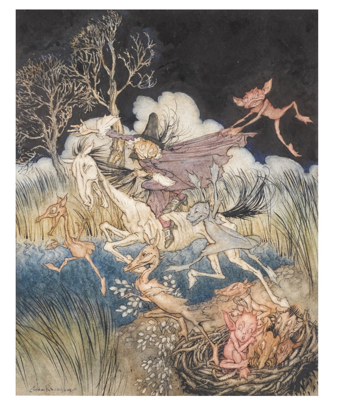 On the way home, driving through the woods, I reflected on my strange and wondrous night. The games, the music, the dinner… I felt my pockets, and the presents were still there: the pencase in one pocket, and the Wedding Orange in the other. I thought about playing tug-of-war with Pushkin, dancing with the kitsune woman, chugging the punch with Barbarot—my flight on that spirit whale, the sky, the view… and Linda’s words.